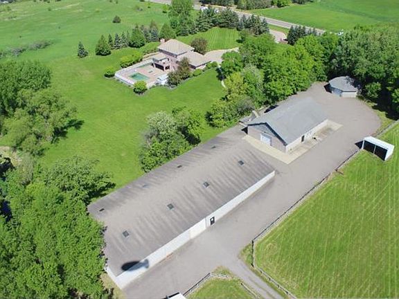 Wow, what a perfect sized hobby farm! Easy access to Hwy 12 and a quick jaunt to Lake Minnetonka. The all concrete and brick construction two-story home features a 4-season sun room, deck overlooking backyard, curved staircase, two fireplaces, lower level wet bar. Walk-out to a large patio and gardens at lower level. You will never run out of storage at this property. The 8.68 acres has beautiful tree coverage, rolling terrain, and a pond to enjoy the roaming wildlife. Outfitted with a 180'x72' indoor riding arena, 80'x50' heated horse barn w/ 6 stalls, wash bay, tack room, and office, as well as a heated octagon-shaped shop/garage for cars, boats, machinery and equipment. Extensive paved areas around outbuildings. Spectacular home and acreage for all of your hobbies and entertaining . . . and perfect for privacy, too!