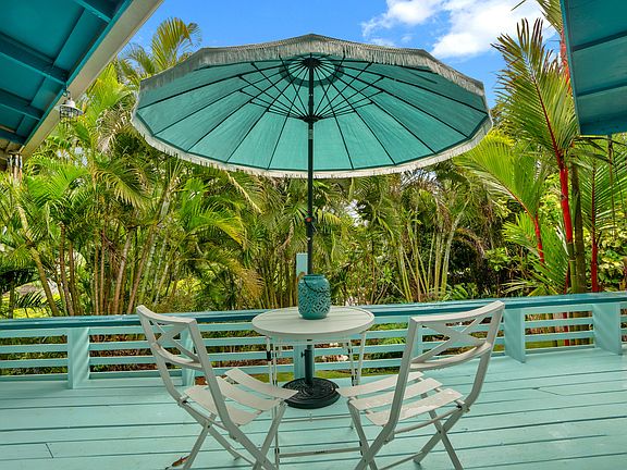 The single-level vintage home exudes nostalgic charm and features three bedrooms, two-half baths, plus an additional convenient bathroom/shower room. Inside you’ll find a bright open floor plan that includes a dining room with bar seating that flows out to a lanai, a large living room that connects to a covered lanai, and a large front patio—all perfect for entertaining.