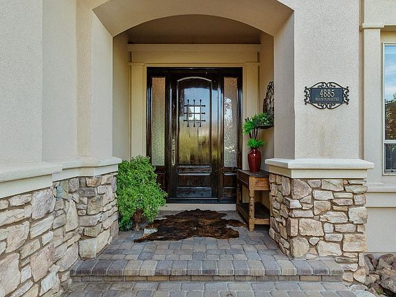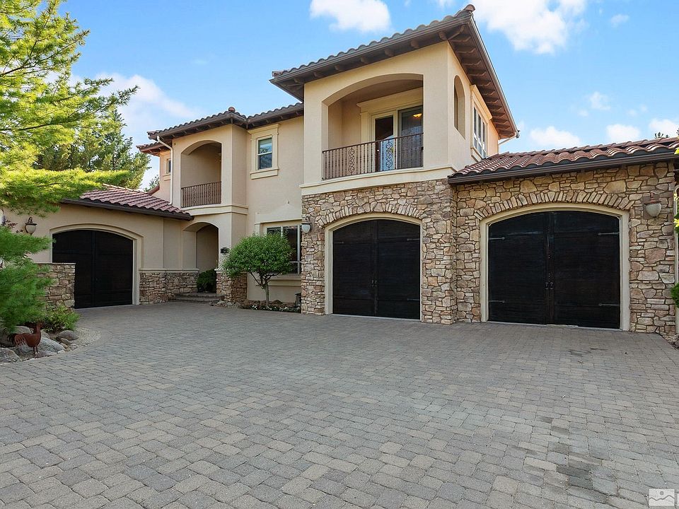 Discover the ultimate in luxury living with this stunning custom home, truly one of a kind! Nestled in a prestigious gated community, this residence features impeccable designer touches and breathtaking city and mountain views. The grand entry boasts expansive ceilings and a magnificent wrap-around staircase. The main floor hosts a primary suite with a luxurious bath and walk-in closet. A versatile bonus room can serve as a fourth bedroom, home office, or media room., Designer touches include hardwood floors, ceramic tile, custom cabinetry, and top-of-the-line appliances. Step out back to relax by the gas fire pit and watch the sunset over the Cityscape and Peavine Mountain. The second story includes 3 covered patios off of the common space and two of the bedrooms. Location is situated a block from BLM where you can access trails that go on for miles! This home is a retreat for relaxation, entertainment, and is close proximity to everything Reno has to offer.