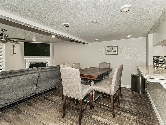 White plantation shuttersBreakfast barWine nookComfortable primary bedroomInterior residential fire sprinklerStylish granite countertopsStainless steel appliances