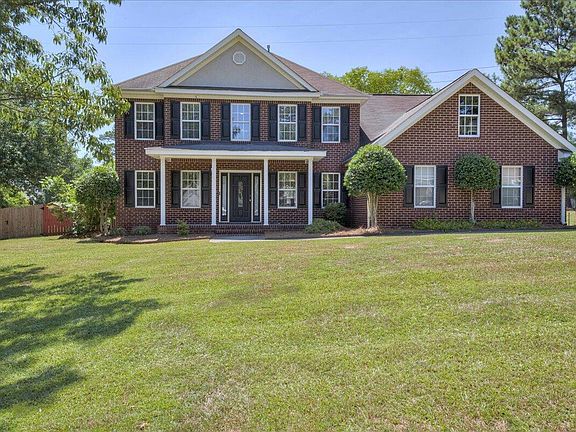 Welcome to this beautifully maintained brick home in Evans, ideally situated at the beginning of a cul-de-sac for added privacy. The spacious owner suite is conveniently located on the main floor. The home sits on a generous .74-acre lot with a fenced backyard, perfect for those who love space. Recent updates include a beautifully remodeled kitchen, new carpet, new flooring, and updated lighting, we love this home. Upon entering, you're greeted by an eye-catching two-story foyer leading to an office or formal sitting area on one side and a large dining room towards the other side. The formal dining room provides ample space for large gatherings. The kitchen features stainless steel appliances, custom cabinetry, and unique leather-finished exotic granite countertops. A built-in bar and a cozy space for pets are tucked under the staircase, such a clever use of the space if you ask us. The owner's suite is privately located at the back of the home, featuring a large ensuite bathroom with a jetted tub, separate shower, double vanity, and water closet. Upstairs, you'll find four spacious bedrooms and two full bathrooms, with one bedroom potentially serving as an additional in-law suite with a private bathroom. The large walk-in attic offers plenty of storage space. Outside, enjoy a large patio perfect for grilling and a vast backyard ideal for activities entertaining. The property includes a side-entry double car garage with an oversized driveway, providing ample parking space for multiple cars at a time. The neighborhood offers a pool and clubhouse for your enjoyment, people really do love living here. Plus, its zoned to Columbia County Schools: Evans elm, Evans Middle, Evans High. If you've been waiting to buy into the Farmington Neighborhood, this home is one of a kind!