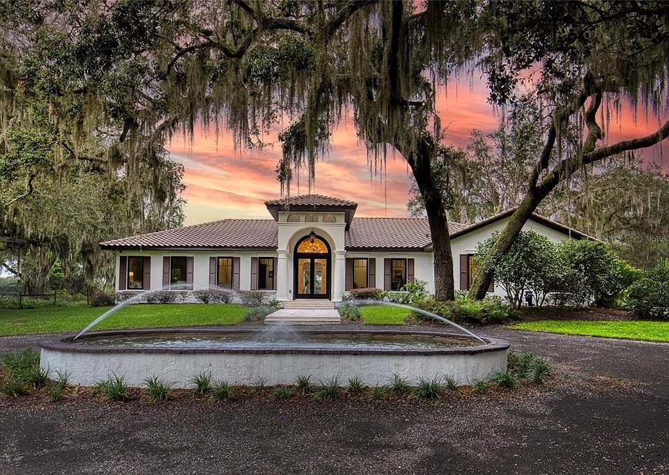 Every so often, a property comes along that is so spectacular and awe-inspiring, words simply can't do it justice. The beauty of this 11.37-acre estate, with its rolling grassy knolls peppered with centuries-old Live Oak trees, gardens of Bottle Brush and Holly trees, and fragrant hedges of night-blooming Jasmine, is a rare find. This is one of those extraordinary places. The home, with 3,310 square feet of conditioned living space, was completely rebuilt from the ground up. The renovation involved stripping the house down to its foundation and solid block walls, then meticulously crafting it with the highest quality materials and construction methods. Set against this breathtaking landscape, the property features a private in-ground pool, a charming stand-alone pergola, a five-stall barn, four grazing paddocks, and a tranquil pond in the distance. The property is fully gated, with security cameras surrounding the exterior, and is pre-wired for a whole-home generator, offering peace of mind and privacy in a setting of unparalleled tranquility. A long, winding driveway leads to a circular motor court, crowned by an elegant oval fountain. From there, you ascend a set of travertine steps to the double glass and wrought-iron French entry doors and step into a three-bedroom, two-and-a-half-bath masterpiece that seamlessly blends modern design with rustic charm. To the left of the entry foyer, you'll find a home office featuring a 2-sided solid quartz desk and a full wall of custom-built cabinetry. To the right, the formal dining room overlooks the fountain and majestic Oak trees. Throughout the common areas, wood-grained plank ceramic tiles provide a warm and inviting atmosphere. The bathrooms are finished with large-format porcelain tile The chef's kitchen is a standout, featuring top-of-the-line Monogram Energy Star appliances, ample quartz countertops, and a hidden pantry. The center island is equipped with a prep sink, microwave, under-counter storage, and pop-up electrical outlets. The kitchen also boasts a six-burner gas stove with a griddle, split ovens, and a side-by-side fridge with an automatic ice drawer and always-full filtered water pitcher. The adjacent living room, complete with an electric fireplace, opens onto a back patio adorned with white travertine and offering sweeping views of the pool, stand-alone pergola, and the distant pond. Two interconnecting wells service the home's water supply and the 11 irrigation zones across the property. The pump house also includes a purification system and softener. The primary suite overlooks a private garden and features its own mini-split AC for personalized comfort. The walk-in closet, fully built-out and spacious, is sure to please even the most discerning fashion lover. The primary bath offers a glassed-in shower complete with overhead rainfall, wall, and handheld spray fixtures, as well as a separate soaking tub for ultimate relaxation. Additional features of this home include a dedicated laundry room with a stacking LG washer and dryer, a craft room for creative pursuits, two new pool pumps, a new 5-ton Bosch HVAC system, a 500-gallon above-ground propane tank, a tankless Rinnai water heater, and programmable Bosch thermostats. This offering comes with a permit to build a 4-car tandem garage, to be attached to the home via a glassed-in, conditioned breezeway. The roof tiles for this addition are already on-site and match the residence. This property is truly a rare gem!