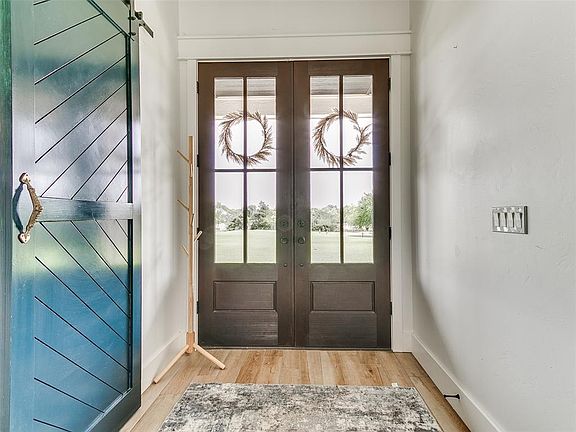 Embrace the best of country living in this modern farmhouse-style custom built home set on 3.77 acres with trees. This property shows attention to detail from the sprawling front porch and cedar columns to the inside details & amenities that set it apart from standard builds. The residence blends indoor and outdoor living seamlessly with expansive windows that fill the home with natural light. Inside the open concept layout with spacious and open living area, cozy fireplace, gourmet kitchen and roomy dining area, provides the perfect setting for hosting family gatherings or entertaining. The home has 4 bedrooms and 5.5 baths, all bedrooms have closets with built-ins. Additional features include a Study and a Pantry that is also a safe room, bonus room upstairs with a full bath and much more! A large, covered patio opens to the stunning pool complete with waterfall and hot tub. This area is a wonderful place to unwind and relax or have an outdoor get together; pool area has a private full bathroom. You must see this home to appreciate all of its fine qualities.