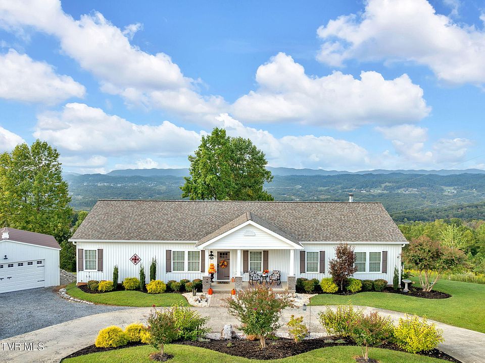 Yard barnBreathtaking mountain viewsCozy gas fireplaceWalk-in closetCircular drivewaySpacious family roomTwo car garage