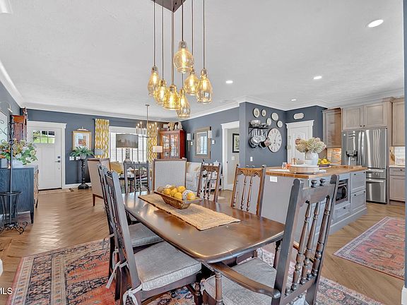 Step inside this beautifully renovated home offering a seamless open floor plan and breathtaking mountain views. The formal living room flows into a custom designed kitchen featuring high-end cabinetry, quartz countertops, and an impressive 8 foot island with butcher block top. The dining area opens onto a covered deck with hot tub, the perfect place to unwind while taking in the stunning scenery.