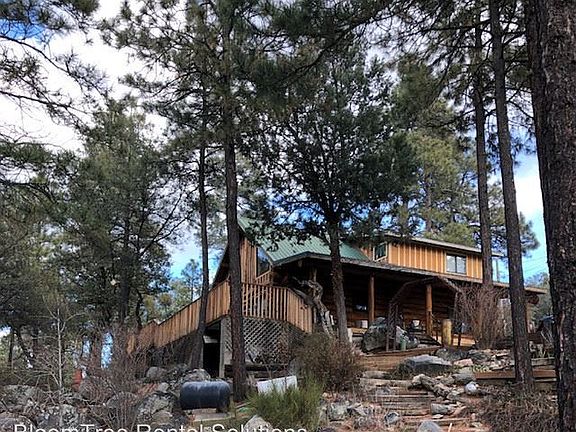 Spacious Cabin in the Pines ~ S Prescott - If you've been looking to live in a log cabin in the tall pines of Prescott, this is it! Almost 2,100 sf located in Ponderosa Park with a covered front porch leading into an open living area with vaulted ceilings, kitchen and dining with a wood burning stove. Just off that room is a guest bathroom and two guest bedrooms. Head up the beautiful log stairway to the roomy, carpeted master bedroom loft with bathroom and closet. Back downstairs there's a very large family room with built-in entertainment center, pellet stove, laundry/storage room and sliding door to the open deck. Downstairs from the deck is a workshop room for tinkering or storage. Enjoy the 1/3 tiered acre with a green house! Property is on septic and serviced by private water company. MAX two pets over 3yrs old, deposits and insurance required. Not fenced. All occupants 18yrs+ must complete an application. Sorry, no students. (RLNE4646383)