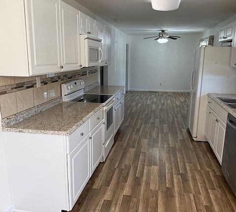 Adorable 2BD/2BA home on 1.40 ACRE lot. Home was professionally remodeled in 2020 with new flooring, new metal roof, tile floor in the laundry room and tile bathrooms. All appliances stay, electric range (self-cleaning), refrigerator/freezer, washer and dryer, microwave- built in- and dishwasher. Large barn 24x31 with 3 door capacity on the front and one regular door on the side. The pump for the well is also in the barn. Covered front porch and a deck on the side of the dinning area and kitchen. Backyard is chain link fenced with beautifully landscaped yard. Move in ready!