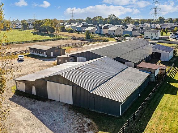 Attention horse lovers! What a rare opportunity to own this iconic equestrian facility in an extremely convenient location! This remodeled ranch home has gleaming hardwood floors, newer carpet, remodeled baths and kitchen.  The sunken family room has a wood burning fireplace with gas line.  Basement with bath rough in ready to finish!  The large 3 season room provides gorgeous views of the barns and acreage. Enjoy riding all year long with both indoor and outdoor arenas, 30 horse stalls, a gorgeous, remodeled lounge with half bath, an apartment on site for ranch hands or some extra rental income. Additional barns offer a ton of storage! 4 beautiful fenced pastures too! Currently being utilized as a profitable boarding facility but can be a private facility. Pictures taken 10/22 Agent Owned