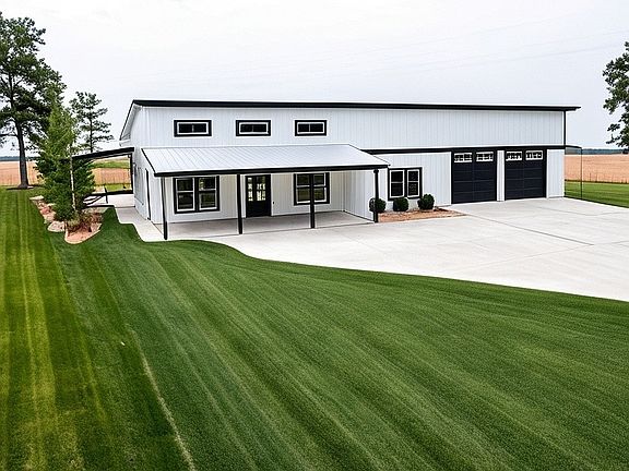 Come build your dream barndo home with Nicholas Construction, LLC with tons of options available for you on a level lot with plenty of space in the county! An additional 10 acres is available on the connecting parcel. Step into a large open concept design with a massive great room that includes your living room, dining room, and kitchen and fireplace for the cold winter nights. Step out onto your covered side patio and front porch from the great room. The huge walk-in pantry is perfect for country living. The garage is HUGE and leads to a drop zone area leading to the laundry room and a half bath for guests. The master bedroom includes a large walk-in closet, double vanities, large shower, linen closet, and toilet room. Both secondary bedrooms include a walk-in closet and access to a bathroom with double vanities. Plan can be modified to include a 4th bedroom, office, outdoor kitchen, indoor/outdoor living area, storm shelter addition, plus a detached garage is able to be added.