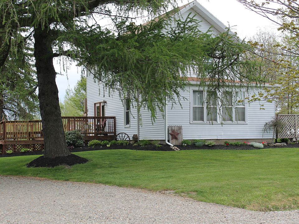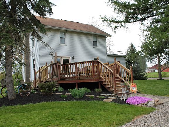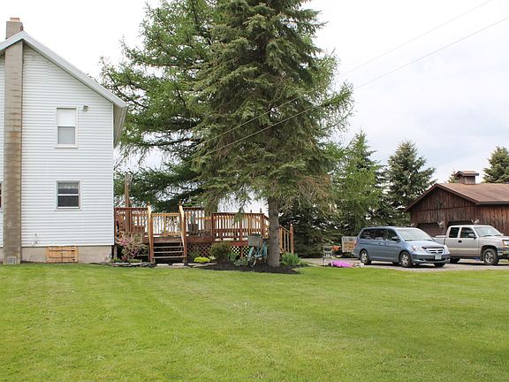 Kitchen/Dining area combined. Family Room. Office. Playroom. 3 bedrooms and 1 bath upstairs. Laundry and woodstove in basement. 2 car detached garage. 2 other outbuildings. Finished storage room in garage.