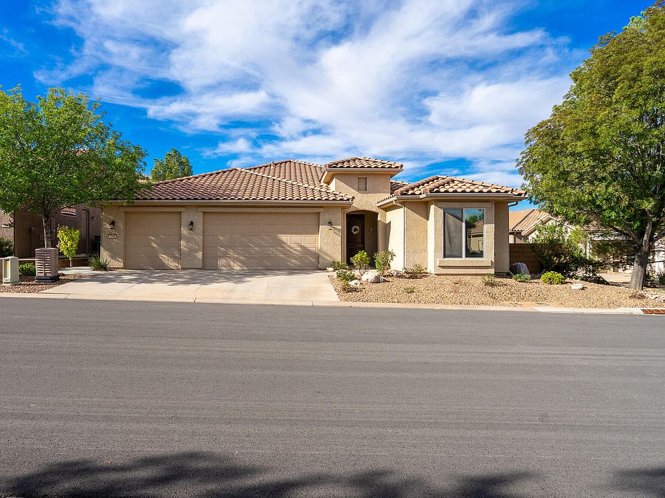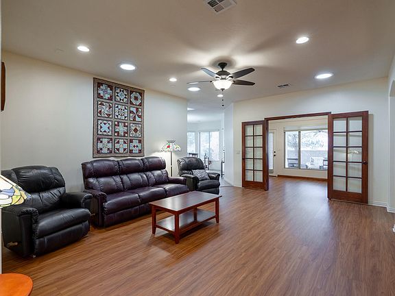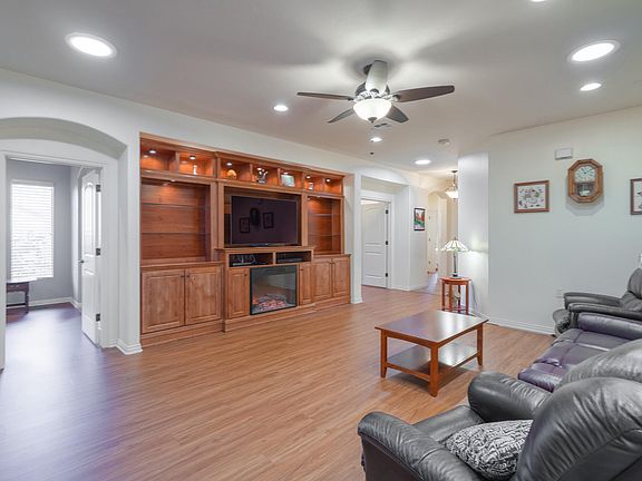 55+ Active community. Beautiful Illusions model with 2 bedrooms, a den, a living room with a built-in entertainment center & fireplace, a bonus room off the living room, a large and lovely kitchen with granite counters, kitchen island, a pantry, a roomy dining area and a 3 car garage. Commercial grade LVP flooring in living room. 4 solar tubes for lots of light. Fully fenced yard with expanded, covered patio. (Rodan thinker statue in back yard exluded) Refrigerator, washer, dryer and golf cart with a new lithium battery included NO SHOWINGS UNTIL NOV 8TH.