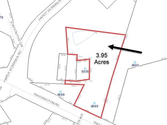 4 Acres, Has a pond, several outbuildings. Great investment as it has over 225' of frontage on Washington Road. Could be developed for professional, church, funeral home, school or other special uses. 1/2 to 3/4 Acre pond at the rear.