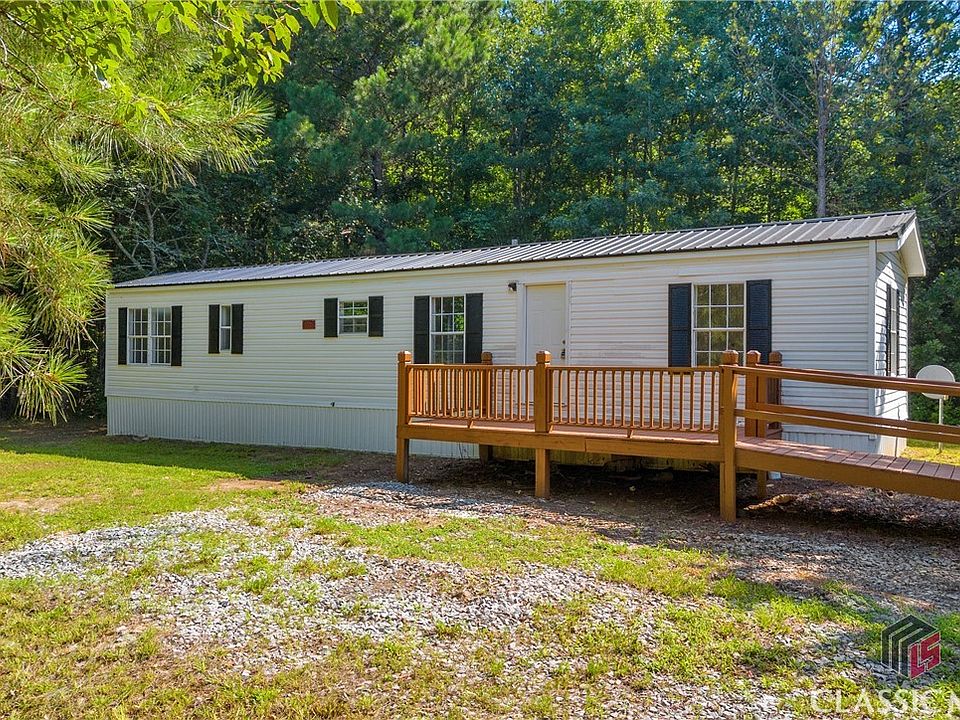 Looking for peace and privacy with room to roam? This recently renovated 2-bedroom, 1-bath manufactured home is situated on 5 acres in quiet Carlton, GA-just 30 minutes from UGA and 1 mile from local conveniences. Set on a permanent foundation, this home has undergone thoughtful updates including a new metal roof, brand new HVAC system, updated flooring, fresh paint, and all-new plumbing under the home. The well has been serviced and includes a new well house and expansion tank, and the septic system has been pumped and inspected. New oven/range combo and refrigerator to be installed prior to closing. Enjoy your mornings or evenings on the spacious front porch, complete with a wheelchair-accessible ramp and plenty of space for seating or grilling. Whether you're dreaming of a mini farm or just want room to breathe, this property is ready-with space for chickens, horses, or simply some quiet country living. Don't miss this opportunity for affordable acreage and a move-in ready home in the countryside. Manufactured home title has been retired. Owners are licensed real estate agents.