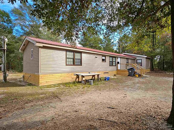 CALLING ALL INVESTORS! 3 bedroom, 2 bath manufactured home on 0.38 acre lot in DeFuniak Springs. Diamond in the rough just waiting for you to make it shine. Great floor plan with spacious living room and eat-in kitchen with breakfast bar. Split bedroom layout with primary bedroom just off kitchen. Opposite wing of home has bonus/flex room, 2 additional bedrooms, and full bath with double vanity and tiled shower. HUGE front and back yard with many mature trees. This property is distressed and in need of some TLC, but would make a great investment!