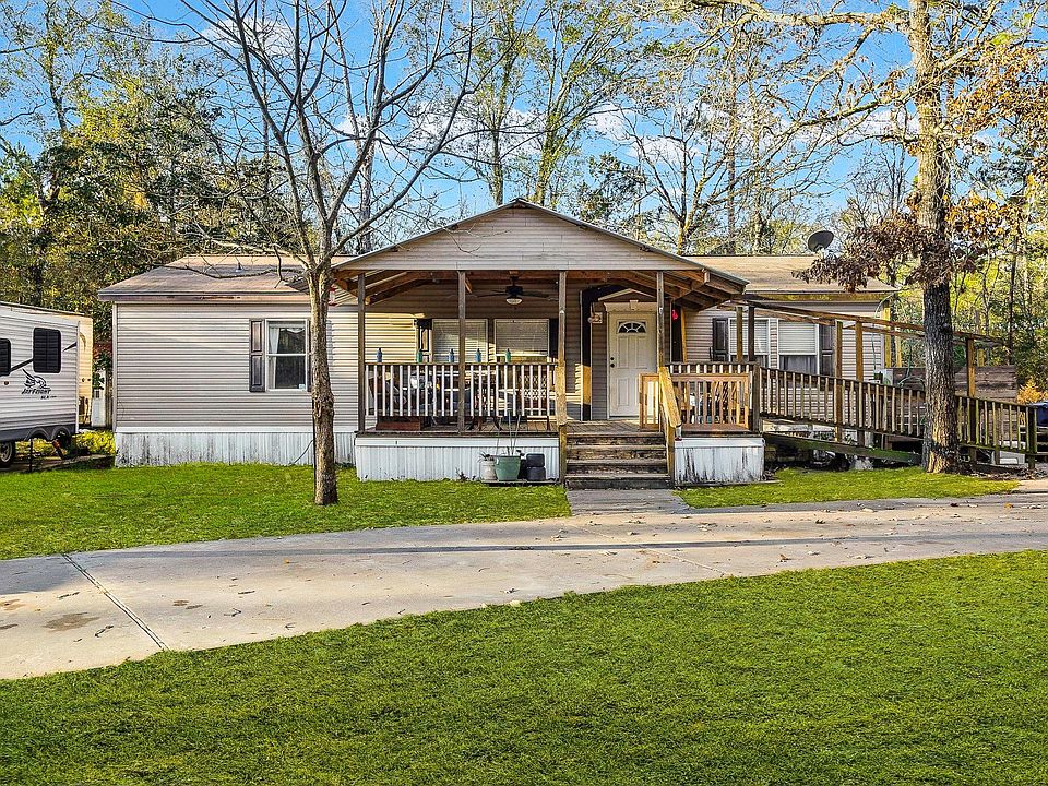 Welcome to this well-maintained 3-bedroom, 2-bath manufactured home situated on a full 1-acre lot, offering the perfect blend of comfort, space, and convenience. Located just minutes from Lake Livingston, this property is ideal for those who enjoy peaceful living with easy access to fishing, boating, and outdoor recreation. The property also includes a concrete circle drive and two meter poles, making it well-suited for additional structures, RV hookups, or future expansion.
