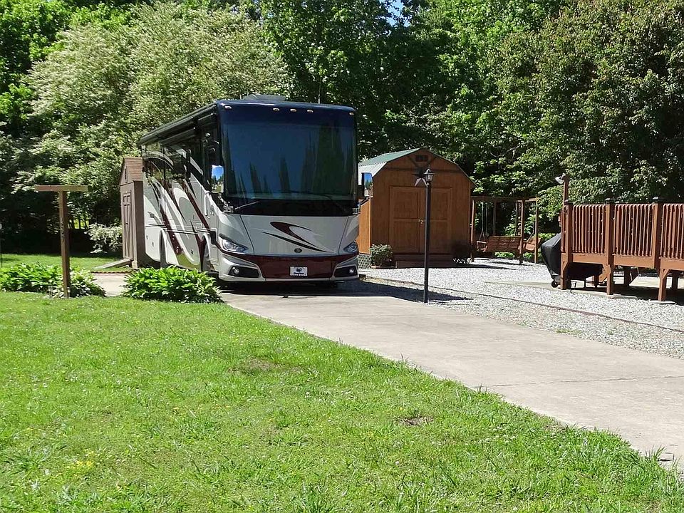 Gorgeous level lot in Elkmont RV Resort, ON THE CREEK with long concrete parking pad for any size RV and full hookups. Spacious storage shed is included also. Your own private beach along the creek is the perfect place to sit and unwind. The lot is plenty big enough for a park model to be added. Don't miss out on this reasonably priced creek lot! High speed fibre optic internet available for 300 per year and is paid for the rest of 2019! Elkmont offers, pool, clubhouse, exercise room, laundry facility, private roads and is a gated community. Close to Helen, Wineries, Blairsville and Dahlonega. Adjoining lot with park model is available as well.