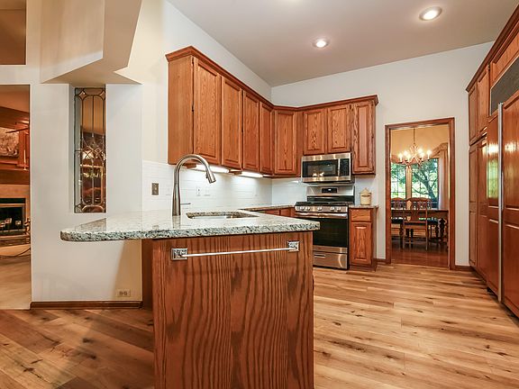Executive 4 bedroom home with 2,507 square feet finished on the main floor. Uniquely located at the end of a cul-de-sac with complete privacy on 2.3 wooded acres. This home boasts a custom designed kitchen with new granite counter tops, high end appliances including a Sub-Zero refrigerator, spacious dining area with bay window overlooking the park-like setting, large formal dining room, exceptional master bedroom suite complete with fireplace, over-sized double sink area, separate shower and whirlpool tub. 10'ceilings throughout provide added grandeur. Enjoy the 4 season room with floor to ceiling glass, adjoining the outside deck-perfect for entertaining family and friends. Garage is professionally finished with epoxy floors. Peaceful backyard is host to wildlife and a koy pond. An additional 2,491 square feet in the basement. Ideal for kids play area or additional bedrooms and bath. Welcome home!