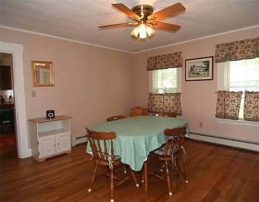 Large, Lovely Colonial in Dolbeare School District has 41,538 sq ft level yard. This home is completely updated with newer kitchen, updated baths, 1st flr laundry area. French door off kitchen to deck, HW floors throughout. Study on 1st flr with built-in desk/wall unit. Front and rear stairway to Brs on 2nd flr. Extra room could be walk-in closet or smaller 4th Br. Newer windows, new 4 zone heating system. Large 2car garage with plenty of storage and unfinished 2nd flr above garage.