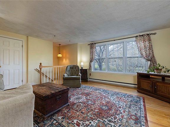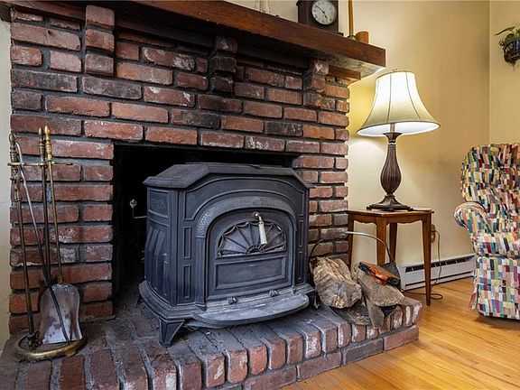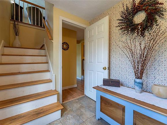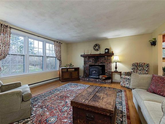 Welcome to this charming home set on a beautiful 1-acre lot in Coventry, RI. The location balances tranquility and convenience, being just a short 10-15 minute drive from I95, making commuting and access to local amenities easy. The home features a distinctive reverse living layout, with 2 integrated yet separate floors of living. The first floor is configured as an in-law apartment complete with kitchenette, full bath, living room with fireplace, and bedroom. It provides a versatile space ideal for guests or additional family and has a private entrance off to the side of the house. The second floor is the main living area of the house. Head up the stairs where you will be greeted by the inviting living room, centered around a wood-burning fireplace, with beautiful windows that overlook the yard. The generous eat-in kitchen has French doors off of the dining area that lead out to an outdoor deck, screened in lanai and steps down to the backyard. Three good sized bedrooms, all with hardwood flooring, and another full bath complete the second floor. Additional amenities include brick fireplaces with wood burning stoves on both levels of the home, a new roof and beautifully maintained landscaping. Tons of parking, with room to accommodate over eight vehicles, means space for all your toys and guests! All with a layout that can suit so many options for multi-generational family living and work from home scenarios. A wonderful and well loved home awaits you!