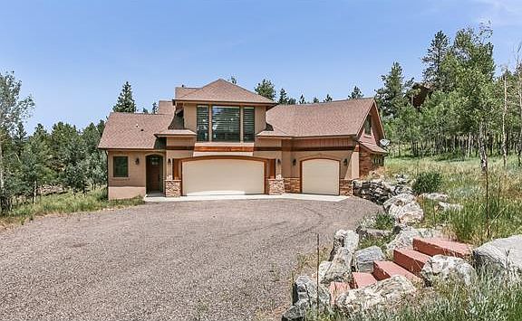 Conveniently located iN Mill Iron D Estates, an abundance of opportunities await you in this striking Stucco home built in 2010. Located on 9.38 of land filled with quaking aspen trees, beautiful rock outcroppings and unparalleled views of Mt. Rosalie! Quality construction features custom windows and doors, 2 X 6 superior insulated construction, whole house water filter, UV Water purifier, water softener, two furnaces, gas powered generator, A/C for upstairs, huge three car heated garage. The site has been prepared for a planned addition to the existing home with existing septic system built to accommodate 5 bedrooms. Tank less Rinnai water heater, power humidifier on lower level and custom window treatments to name a few additional features. This home exudes quality. Like new condition. Pictures are worth more than a thousand words on this special piece of land and home. Radon mitigation system in. Move in and enjoy a superior built home or add on and expand the space.