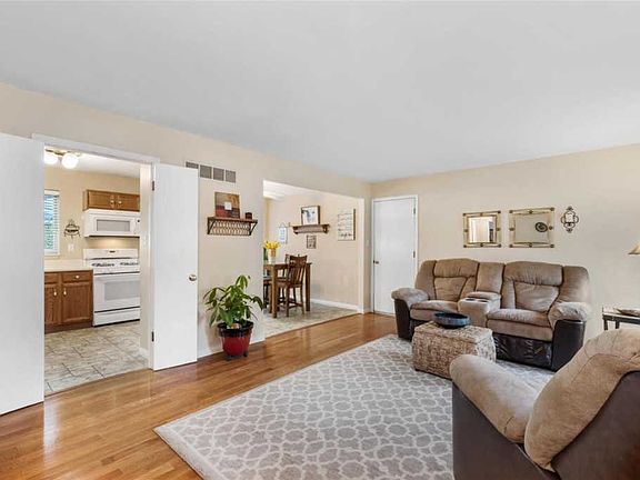 Lush landscaping surrounds this beautiful Cape Cod tucked in the back of the neighborhood on a private (not through) street. Hardwood floors in the family room that is open to the kitchen & dining room, with a bay window door that leads to the deck. The kitchen is well-equipped with a gas stove, corner double bowl stainless sink & a pantry. The refrigerator, washer & dryer stay! Adorable second floor has 2 bedrooms with cute dormer windows with a full bath between. Bonus room in the lower level would make a great home office. The level, green backyard is a little slice of paradise, with a deck surrounded by impressive landscaping, a vegetable garden, partial fencing, & a shed to store your gear. Recentely updated HVAC w/humidifier. Easy-care vinyl siding. 13-month home warranty included. Easy access to I-70 & endless shopping, restaurants & amenities. Ft Zumwalt (South) Schools. See this cutie today!