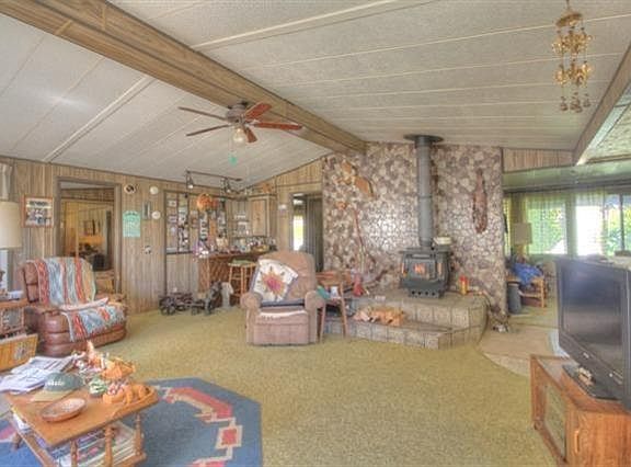 What a great opportunity for a cash buyer! This one-acre flat parcel has a 1976 Triplewide M/H that is very livable, but it will not finance. It has a newer metal roof, vinyl windows & Monitor heater, and features a nice kitchen, large family room with a wet bar, living room, dining room, 2 bedrooms, plus a den. There's also a large brick BBQ out back that even has a built-in gas fireplace. The property also features a nice General Purpose (GP) building that has a nice walk-in cooler, a processing room for either canning or game, plus a great storage room with wall-to-wall shelves. It also has a tack room, and 2-car storage with a shop area. One end features a 12' x 32' covered RV area. As a bonus, the entire upstairs is ready to build out or whatever, including sliders and decks at both ends. If you have animals, you will appreciate the metal barn with covered shelter, which is completely fenced in. The Seller may consider an owner-carry for a qualified Buyer with a good down payment.