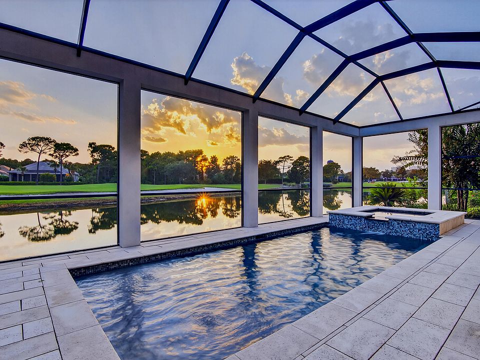 Gas fireplacePicturesque viewsExpansive screened lanaiGolf course viewsMaster suiteCustom-built shelvingOpen floor plan