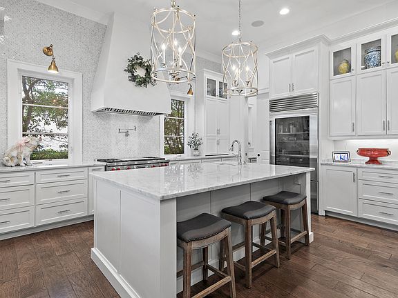 Discover the perfect fusion of modern elegance and artistic coastal contemporary design in this remarkable lakefront residence. This newly built home sits on one of the premier lots in Regatta Bay and offers both lake and golf course views. The home is located within the prestigious gated golf and boating community of Regatta Bay. Completed in 2016, this meticulously designed home showcases an open floor plan with the majority of the home located on the main level. The thoughtfully arranged layout features four bedrooms and four and a half bathrooms, enhanced by clean lines and exquisite designer finishes throughout. This designer finished property boasts remarkable features, including soaring 12-foot ceilings on the main level and an oversized three-car garage with ample parking. The interior showcases elegant hardwood flooring throughout, leading to a spacious living room that is anchored by a contemporary gas stone fireplace. This inviting space offers seamless access to an expansive screened lanai, showcasing 650 square feet of outdoor living space adorned with pecky cypress ceilings and beautiful views. The outdoor area is further complemented by a secondary gas fireplace, pool and hot tub, perfectly positioned to capture breathtaking western sunsets and picturesque views of the lake and multi award winning golf course. The designer kitchen is a culinary dream, with custom built cabinetry, Calcutta marble countertops, 60-inch Wolf gas range and a built-in Sub-Zero refrigerator. The kitchen flows effortlessly into the open dining room and includes an oversized pantry with premium storage options. The master suite radiates coastal charm with and a spa-like master bathroom complete with a luxurious soaking tub, dual vanities, chevron-pattern marble flooring, and an oversized walk-in shower adorned with hand-hewn beam accents and dual shower heads. The 13x16 master closet is a standout feature, offering direct access from the master suite and showcasing custom-built shelving along with a center island for optimal storage. Additionally, the laundry room conveniently connects to the master closet for enhanced functionality. On the second floor, you will find two additional bedrooms each with en-suite bathrooms, as well as a flex space. Regatta Bay is a serene, gated community that seamlessly blends golf and boating, offering a lifestyle that is truly unparalleled! The essence of the Regatta Bay Lifestyle revolves around convenience, allowing residents to easily access numerous enjoyable destinations within minutes via golf cart, including the beach! Within the community, residents can indulge in golf, swimming, tennis, pickleball, parks, playgrounds, the Regatta Bay Clubhouse, Legendary Marine, and Legendary Yacht Club. Furthermore, Regatta Bay features a private road that leads directly to the Destin Commons, where an array of popular retail stores for both men and women awaits, alongside a diverse selection of restaurants, Whole Foods, Bass Pro, Lowes, an AMC movie theater, and Uncle Buck's Bowling-all easily reachable by golf cart. Regatta Bay is centrally located offering easy access to the airport and only a few miles from Northwest Florida's finest hospital.