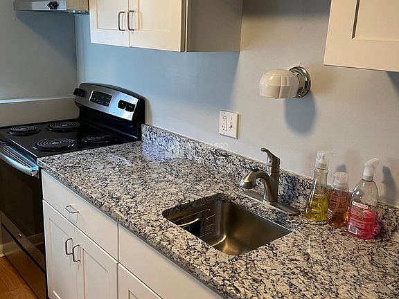 No fee! Studio completely renovated! On the garden level, roughly 400 sq ft w/ hardwood flooring throughout. Beautiful granite countertops, stainless steel appliances, white slow-close cabinets in kitchen. AC, disposal. Heat, water, electric, trash and recycling included!! Updated bath w/ gray tiling. On bus route to Alewife, walking distance to Minuteman Bike Path. Smart card laundry facilities. Cats allowed with additional pet rent. No deposit. First and last month's rent due at signing. Available March 1