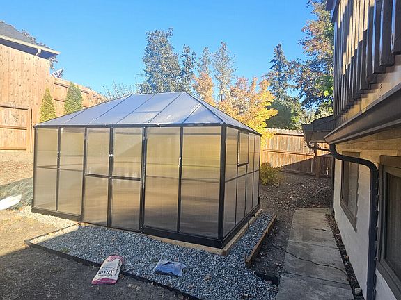 The home is a two story with a approx. upstairs room of 450 sq ft with bathroom, micro and small frig. The home is in a wonderful quiet area. The home has: koi pond with koi. Outdoor garden area. Green house. Storage shed. Hot tub. Butterfly garden. We recently planted different sage plants. Home has a fireplace. It has cathedral wood ceilings. The master bedroom has a huge walk in closet. It has a 3 and 1/2 car garage. It has a large outside patio. Comes with LG gas stove, w/d, frig, small freezer, and a bbq, and a couple cords of firewood.
