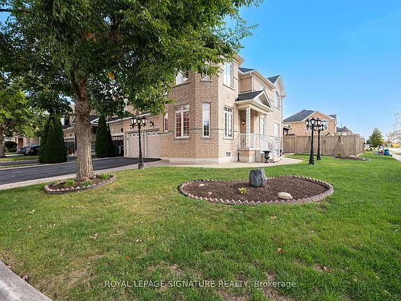 Move up to this spacious 4-bedroom well-maintained family home with over 3400 sq ft of bright airy living space, a finished basement, and a2-car garage. Sitting on a corner lot near to Van Kirk & Mayfield, it is located only minutes from Hwy 410, top-rated schools, shopping, and parks. The front yard boasts an inviting curb appeal with its beautifully manicured lawns and flower beds, an automatic sprinkler system, and accented by three garden pole lamps. The ground floor features a separate study/office for work-at-home needs, and separate family and dining rooms. From inside, access the 2-car garage via the ground floor laundry room. An elegant oak staircase with wooden spindles leads up to four generous-sized bedrooms. The primary features a deep spacious walk-in closet and a large double-sink en-suite, shower, and soaker tub. Two other bedrooms also have their own private ensuite bathrooms. The professionally finished basement features a modern kitchen, a large bedroom, and full bath - ideal for guests or extended family, or even an additional home office. A central vacuum system keeps this entire home in truly spotless condition. Step out from the kitchen out onto a large, covered patio, built over tiled ground - no undergrowth ever. The fenced private backyard is among the largest in the neighbourhood and features a lush green lawn perfect for family fun and entertaining. Additional highlights include an EV charging outlet in the garage, a 5-camera security system, a garden shed, and seven appliances: main floor fridge, stove, dishwasher, washer, dryer, basement fridge & stove, all light fixtures, and window coverings. New roof was completed this summer