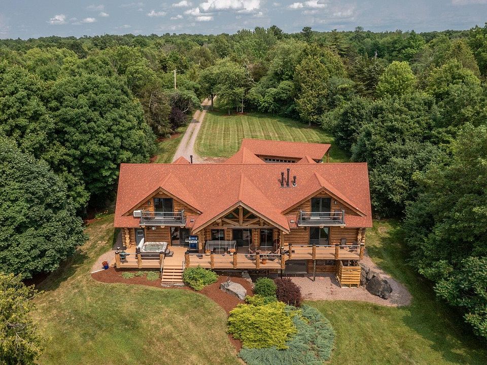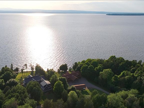 Welcome to this incredible Swedish Cope log home from British Columbia just 24 minutes to Burlington! Views of Lake Champlain & the Adirondacks may leave you speechless. 25-ft floor-to-ceiling windows pull sunlight in, complimenting hand carved logs. Kitchen & walk-in pantry remodeled in 2024, with granite counters & all the cabinet space you’ll need. Open layout is perfect for entertaining complete with a beautiful river rock fireplace. A 70-ft West facing, covered deck adds to square footage, with an awning, hot tub, & stone fire pit. Spacious primary suite on the main level has cedar walk-in closets & balcony. Upstairs, find a timber-framed loft, full bath, & 2 generous sized bedrooms with balconies. The basement may be the star of the show, offering a home theater & completely sound-proof, music recording studio. Hobby workshop, exercise room, Finnish sauna, & convenient garage doors to backyard patio & outdoor shower. Year-round efficiency with 7 zones of heat, 4 zones of AC & ceiling fans make this home quite efficient. Updates include a custom tile work in the kitchen, a mudroom w Puelche Custom Boot Dryer, patios, porch railings & roof. The land has an abundance of fruit trees & mature, easy-to-maintain perennials. Sellers have enjoyed all the water sports & exploring the crystal mine tucked into the 180 feet shoreline, hence the name Crystal Cove Ranch. Just 50 minutes to Smuggler’s Notch & Whiteface Ski Resorts 1 hour, 15 mins to Stowe, Jay Peak & Sugarbush.