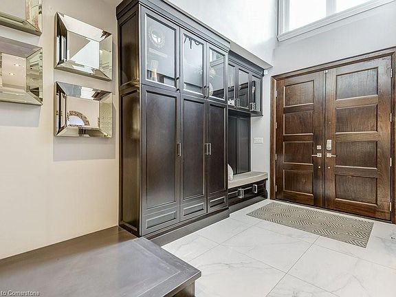 Stunning custom-built home with private backyard and heated pool in SouthWest Oakville. This exceptional residence blends modern elegance with thoughtful design, offering five bedrooms, five bathrooms, and an impressive array of high-end features for the ultimate turn-key luxury living. Step inside to discover an open-concept layout with soaring ceilings. The main floor is designed for convenience and entertaining. The gourmet chef’s kitchen boasts sleek finishes, premium appliances & a waterfall island. LED pot lights and statement chandeliers illuminate the space. Every room is wired for data, telecom, and six security-camera zones. A central stereo system covers six zones throughout. Rich, wire-brushed hickory hardwood floors span all three levels. Full-glass floating stairs and a walk-up basement with separate entrance. All bathrooms showcase natural marble tile. Step outside into your own backyard oasis with deck and heated pool; perfect for unwinding or entertaining in serene luxury. Located close to great schools, tennis courts, Coronation Park, Bronte Harbour, GO Transit and the highway - walk or bike to the lake. WELCOME HOME!