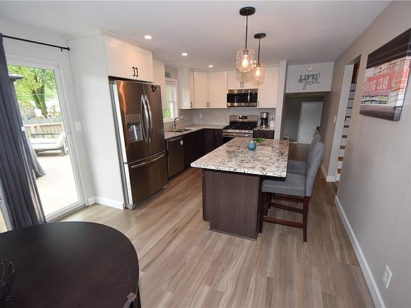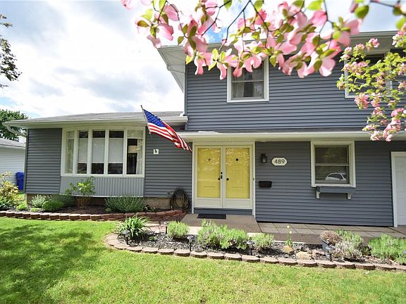 THIS BEAUTIFUL CENTER ENTRANCE SPLIT LEVEL IS HERE FOR YOUR VIEWING PLEASURES! Well APPOINTED with Mature Landscape. Walk through the DOUBLE DOOR ENTRY to IMMEDIATELY feel the open space of the LARGE FOYER. Convenient OFFICE, DEN or GUEST ROOM a nice PLUS right there. FIRST FLOOR FAMILY ROOM has plenty of natural lighting, HARDWOOD FLOORS and FULL BATHROOM. DEFINITELY A POSSIBLE IN-LAW arrangement if desired. Newly completed & RENOVATED KITCHEN 2020. Quality WORKMANSHIP shows with GRANITE COUNTERS, BREAKFAST BAR, RECESSED LIGHTING and much more! The NEWER STAINLESS APPLIANCES WILL STAY. The main BATHROOM offers an UPDATED TILED SHOWER, FLOORING and FIXTURES. NEWER HIGH EFFICIENCY FURNACE & CENTRAL AIR. ENJOY some RELAXATION on the LARGE DECK or any OUTDOOR activity around the FULLY FENCED REAR YARD. HUGE 2.5 CAR GARAGE with plenty of additional WORK SPACE. YES, just MINUTES to GREECE RIDGE MALL, WEGMANS, DOZENS of other MAJOR SHOPPING OUTLETS, and RESTAURANTS. GreenLight Internet Service is here! OVERALL a well rounded Package! SCHEDULE YOUR VIEWING TODAY! Delayed Negotiations Monday May 23rd, 2022@ 4:00PM
