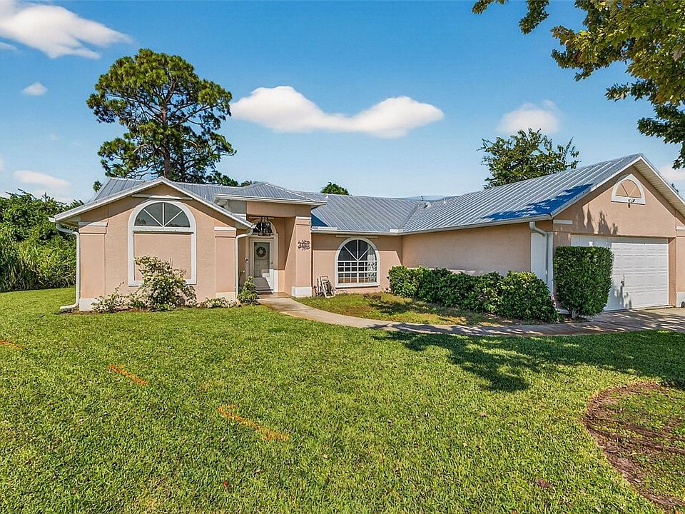 Beautiful 3-bedroom, 2-bathroom home in desirable Lindsey Lanes! Featuring vaulted ceilings, granite counters, and an open, light-filled layout. Spacious screened back patio for extra outdoor living. Enjoy an oversized lot on a quiet cul-de-sac with a 2-car garage, 2022 metal roof, and 2016 A/C. Hurricane-ready with accordion shutters on the back and sides. Low HOA community close to beaches, shopping, and dining—move-in ready and built for Florida living! Room sizes are approximate and subject to error.