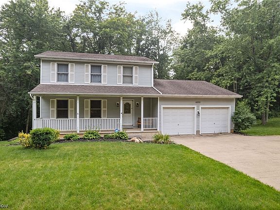 Gorgeous 3 bedroom, 2.5 bath colonial on 1.19 acres in Green! Plenty of living areas including a finished lower level! Hardwood floors throughout the main level. Fully applianced kitchen with a pantry, Corian counters and a center island with seating! It opens to the dining room with a bay window. Gather in the front living room or in the back family room boasting a fireplace and doors to the covered back deck. Convenient half bath plus laundry hookup on the main level - washer and dryer convey! Upstairs, there's updated carpet in the bedrooms. The master suite has 2 closets and a private full bath with a Jacuzzi tub and a tiled walk-in shower. There are 2 additional bedrooms and a full bath. Tons of extra living space on the finished, walkout lower level with a huge rec room, reverse osmosis and plumbed for a full bath. Walks out to the back patio. Relax on the covered front porch and a covered back deck with skylights and beautiful wooded views. 2-car attached garage plus driveway tu
