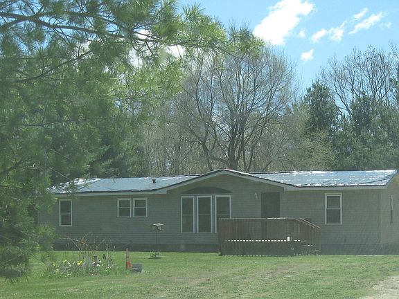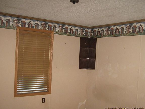 Exterior Features:Vinyl siding, foundation is block. Windows are intact. Hassoffits, no eaves. Front and back decks are present. Shingled roof, dirtdriveway. Detached two car garage. Home is in fair condition.Interior Features:his is a 3 bedroom, 2 bath mobile home in the country. Has amaster bedroom with it's own bath. Living room, dining room, kitchen withrange, oven, sink, and cupboards present. No basement. Water heater andfurnace present. Replace all flooring. Stove pipe in place in livingroom but no wood stove is present. No serial numbers found.