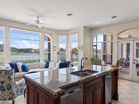 Enjoy sweeping & ever changing scenic vistas from this extraordinary waterfront pool home. Located in Grand Harbor Coventry Island, this 2-story residence is beautifully sunlit & offers a versatile floorplan with all 3 Bedrooms "ensuite", 14' ceilings, custom SS & granite Island kitchen, 42" cabinetry, master bedrooms on both floors. Additional guest bedroom & Bonus Den/Office/Loft upstairs with large covered porch. The pool deck & spacious screened lanai overlook the dazzling natural beauty of Grand Harbor .