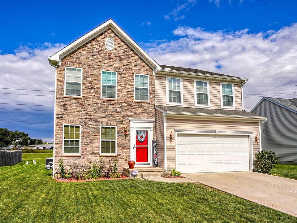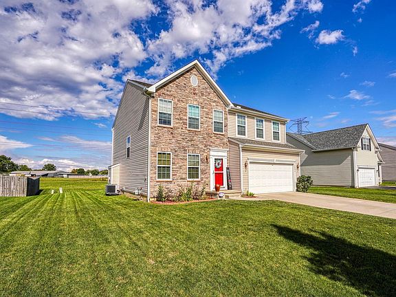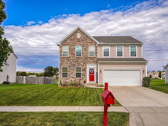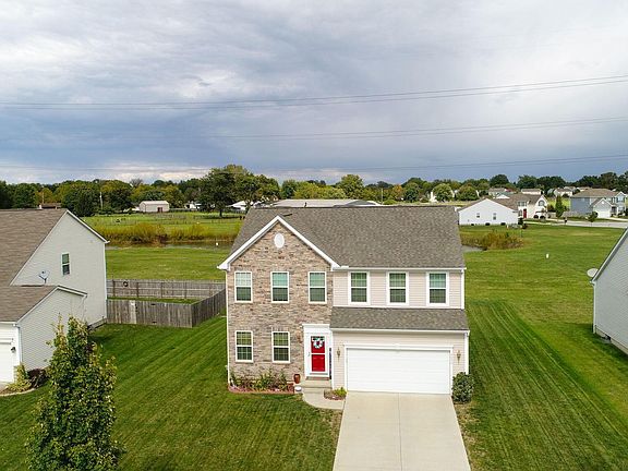 Pride of ownership throughout in this better than new  4 bedroom, 2-1/2 bath two story home in Elmont Place. Impeccably maintained with a beautiful view from your newer custom built deck! This Ryan built home offers a 15 X 20 family room with gas log fireplace and ceiling fan. Open floor plan boasts nice pantry, island, hardwood flooring, recessed lighting with separate dining area. Owners suite with large walk in closet, full bath and whirlpool/tub. Newer sump pump with back up battery, 250 gallon hot water tank with a rough in for a 3rd  ba. Reverse osmosis water filter system. Security system and transferrable home warranty. Second floor laundry. Custom Levolor blinds. (see owner list) Join Groveport Rec Center at reduced rates. Walking trails in sub-division. Close to everything. WOW!