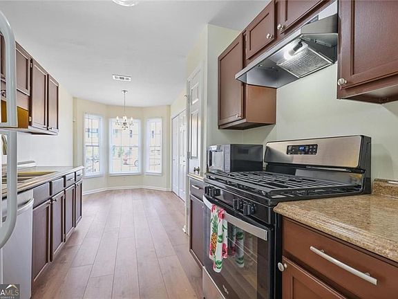Welcome to this beautifully updated townhome in the heart of Acworth, where modern elegance meets comfort and convenience. Freshly renovated and move-in ready, this home features two spacious upstairs bedrooms, each with its own full bathroom, and a stylish half-bath on the main level. All bathrooms have been upgraded with new sinks and contemporary fixtures. A brand-new 30-year roof was installed in July 2025, ensuring peace of mind for years to come. Inside, you'll find luxurious wood-tone laminate flooring throughout the downstairs and bathrooms, complemented by plush 50-ounce carpet in the bedrooms. The entire interior is revitalized with newly painted walls and ceilings, along with new blinds that provide a clean, cohesive feel. The living room is anchored by a gas log fireplace and enhanced with two modern 6-speed ceiling fans, both equipped with remotes for customized comfort. The kitchen is a true standout, showcasing freshly painted cabinets with sleek hardware, a new modern faucet, and a new garbage disposal. Appliances include a refrigerator, microwave, newer Samsung dishwasher, and a brand-new Whirlpool gas range with matching hood. The adjoining laundry closet holds top-of-the-line Samsung washer and dryer units, making everyday tasks a breeze. Dine under the sparkle of a new crystal chandelier in the bay window alcove, adding charm and ambiance to every meal. Additional features include a SimpliSafe security system for optional monitoring and a locking rear storage room for extra convenience. With its prime location just 0.6 miles from I-75, commuting is easy and efficient. This townhome truly is a rare find, combining thoughtful upgrades with a stellar location. Don't let this showpiece slip away-schedule your viewing today.