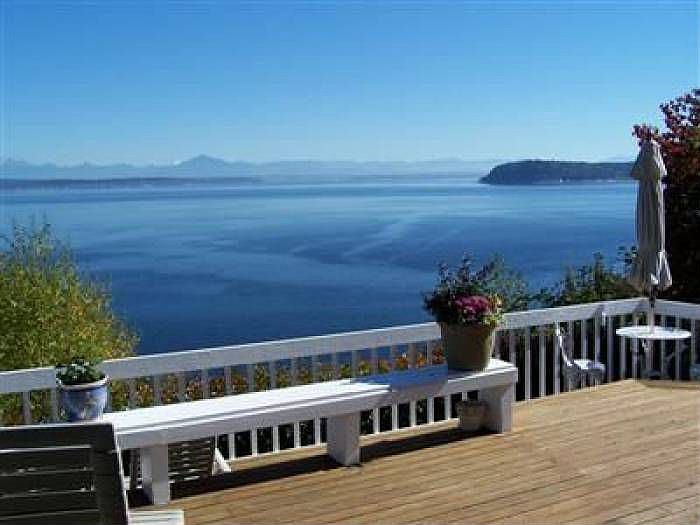 Amazing Views from this Sandy Point high bank waterfront home. 2db/2bth (2; 3/4 & 1; 1/2), also a large den/guest room. Hardwood Floors. This property has been exquisitely updated in & out. Open flr plan that maximizes views of Saratoga Passage, Hat Island, Camano Island, Mt. Baker, Cascades. Watch boats & whales from your large entertaining deck. Quiet & quaint neighborhood, 2 miles from the charm of Downtown Langley. 105+/-ft of Waterfront. Shop w/ a sink under the deck. Deeded Beach Access.