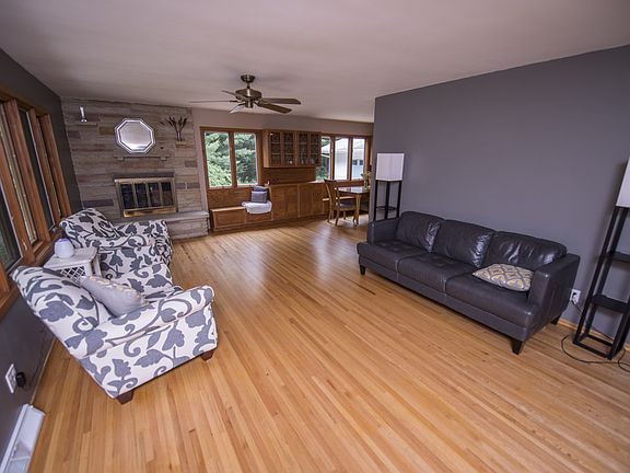 Heavenly on Hicks!!! This beautiful 3 bedroom 1.5 bath home offers over 1500 sqft and has an updated kitchen, newly refinished hardwood floors, panoramic views from the over sized windows, wood burning fireplace, and a complete wall of built ins that add plenty of space for storage and seating in the dining room. The full basement has been freshly painted and has a second fireplace that has a wood burning insert. Let's not forget the sun room that has skylights and over looks the 10 acres this home sits on. The 2.5 car garage and landscaping add the finishing touches to this home. Don't wait, call today for your personal showing!