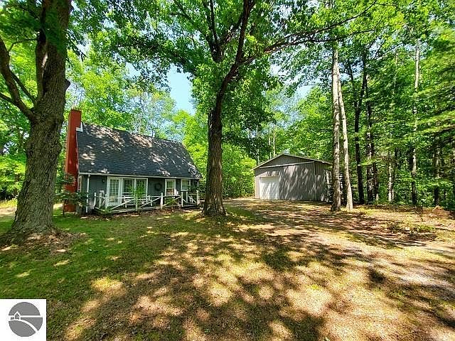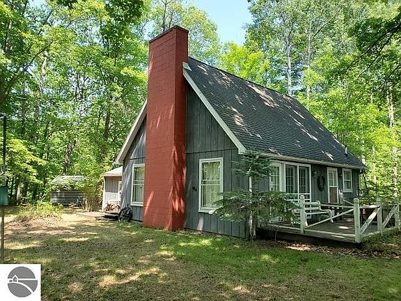 BEAUTIFUL WOODED SETTING! Nice 3 bedroom 1 full bath chalet home nestled on 3 wooded acres with water frontage on the Au Gres River. Open floor plan, brick fireplace in living area, large rooms, including a large bedroom on each floor, loft area, kitchen with appliances and pantry and move-in ready with some furniture included in selling price. There is a 30x40 pole barn with 2 doors, one that is large enough to pull your RV into the barn. Pole barn also has cement floors and electric. This secluded home cannot be seen from the road and not only does it have river frontage but it is not too far from all sports and desirable Sage Lake. You will also find lots of State and Federal lands in the area for trails and hunting. Gorgeous setting and nice home you have to see to appreciate!