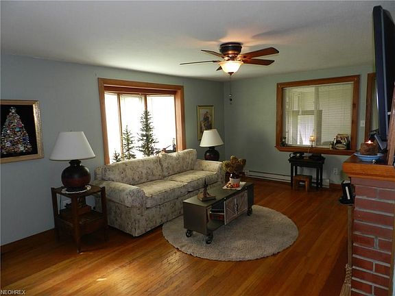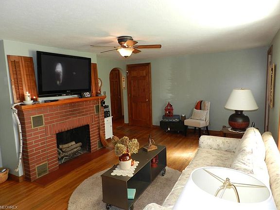 Attractive 3 bedroom Brick ranch with full basement on 1.59 acres in the country yet minutes from Akron, Cleveland. Gleaming hardwood floors throughout, living room with cozy brick front wood burning fireplace, country kitchen with dining area and a large 23x14 deck perfect for entertaining. first floor laundry room presently used as large pantry/closet. Enclosed 23 x 12 Breezeway and a 2 car attached garage. Full basement with workout room and additional room ready for finishing touches, supplemental wood heat system should it ever be needed. 2010 updates include Roof, seamless gutters, vinyl siding on back of house, shed 2013, newer garage door. Electrical hookup in backyard for pool. One year Home warranty! Lovely place to call home! You may not need a down payment as this home is Zero down eligible!!!