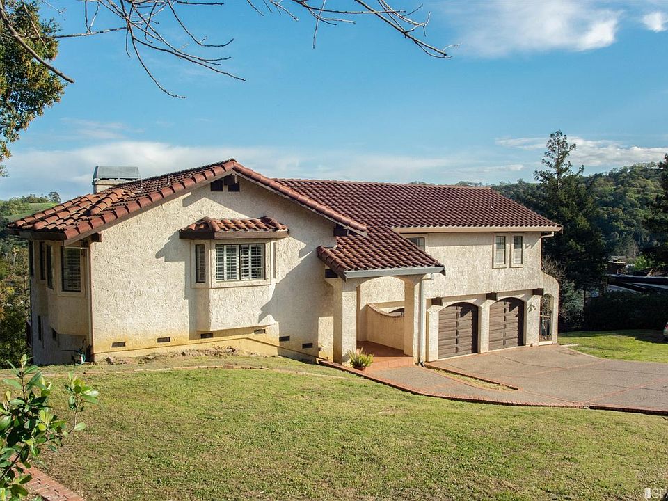 Located at the top of Muir Oaks, this Alhambra Valley Hilltop home offers unparalleled views to Mt. Diablo. Dual level floor plan. 2797 sq ft., 3 bedroom, 3 baths. 2 fireplaces. Spacious great room with connecting kitchen with island. Master bedroom with en-suite bath and walk in closet. Library w/ full bath (could be 2nd master) downstairs. Two freshly updated decks on both levels. Ample parking and 3 car garage. The one-acre lot is a serene and idyllic private setting. Located in Muir Oaks, minutes from shopping, trails, commute routes and transit. Shown by appointment.