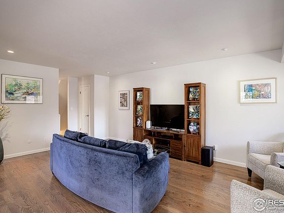 Tremendous opportunity to own an updated, end-unit home in the friendly Flintlock community. A welcoming front atrium greets your arrival. Upon entry, your eyes will be drawn to the hardwood flooring that extends throughout the main level. A wood-burning fireplace in the living room creates a warm and cozy ambiance. The kitchen has been updated with newer appliances and a sunny breakfast nook. Endless outdoor space awaits with the generous-sized HOA common park, a backyard extension of the sizeable wraparound patio with a garden. Upstairs, the secluded primary suite is highlighted by dual closets and a huge private patio overlooking the wonderful greenspace. Two secondary bedrooms are spacious and bright with quiet ceiling fans. A finished basement with laminate flooring would make an excellent home office or rec room complete with 3/4 bath and laundry. You will love the energy savings with the financed SOLAR panels. High-end triple paned windows tops off this efficient home! Unbeatable location near the Boulder Country Club and open space trails.