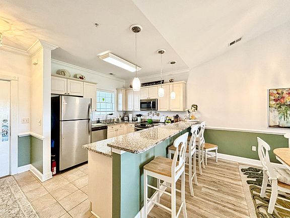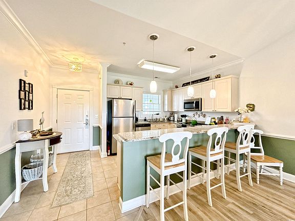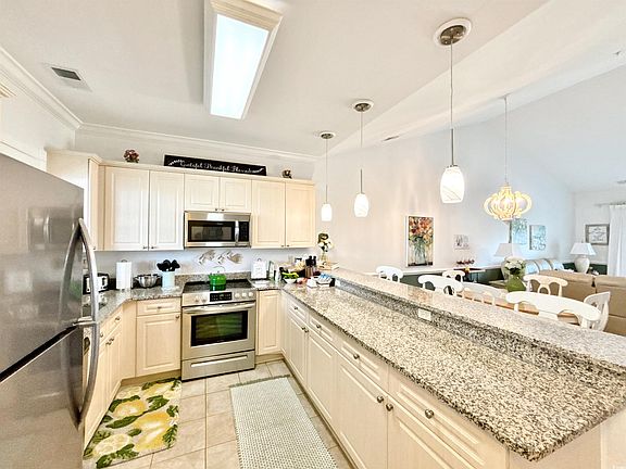 Top-Floor Turnkey 2BR/2BA Golf Course Condo in Magnolia Pointe. Welcome to this stunning top-floor 2-bedroom, 2-bathroom golf course condo in the highly sought-after Magnolia Pointe community of Myrtle Beach. This show stopping unit offers vaulted ceilings that make the space feel significantly larger and more open than lower-floor units — plus, with no one above you, peace and privacy are built in. An elevator in the building makes access easy — no steps required — and the entire unit has been beautifully upgraded and meticulously maintained, making it completely turnkey and move-in ready. The kitchen features granite countertops, stainless steel appliances, and new pendant drop lighting above the breakfast bar. Luxury vinyl plank flooring runs throughout the main living areas, complemented by ceramic tile in the kitchen and baths, and plush carpet in both bedrooms. The oversized master suite is a true retreat, with vaulted ceilings, a ceiling fan, bump-out bay windows offering a sitting area with breathtaking golf course views, a walk-in closet, and an en-suite bathroom with a double-sink vanity and tub/shower combo. The second bedroom offers convenient access to the second full bath, which also serves as the main guest bath. Additional recent upgrades include: New Maytag washer & dryer set (2025), Fresh paint throughout (2025), and New water heater (Dec 2024), HVAC 2020 & Serviced Regularly. Step outside to your spacious private rear balcony, perfect for enjoying morning coffee or evening sunsets overlooking the golf course and a sparkling community pool just steps away. The views are incredible! This condo is centrally located in the heart of Myrtle Beach, just minutes from the ocean, Restaurant Row, Broadway at the Beach, an abundance of shopping/ dining options, award-winning golf, The Market Common, and Myrtle Beach Airport. The location truly doesn’t get better - with the central location & close proximity to major highways - you can get to anywhere the Grand Strand has to offer (north end, south end, Carolina Forest, downtown Myrtle) with just a short drive! HOA includes: water, trash, landscaping, basic cable & internet, elevator, pool service, and pest control (Building insurance and H06 policy are separate). Don’t miss your opportunity to own this immaculate, top-floor golf course condo in one of Myrtle Beach’s premier communities!