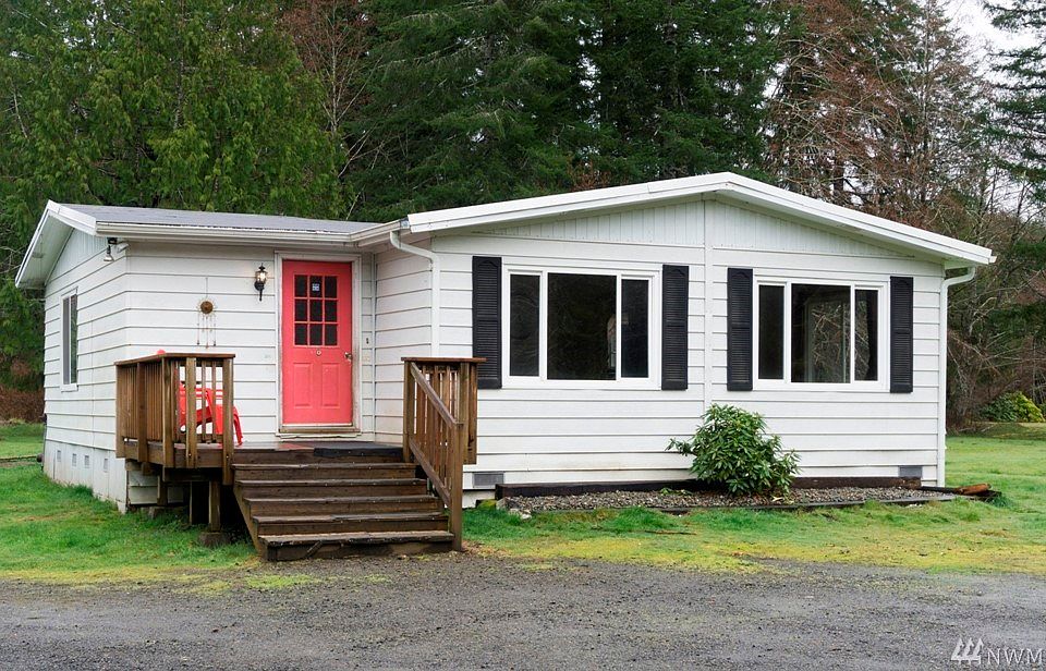 Triple wide mobile home (1978) has 3 beds, 1-3/4 bath on 7.5 acres (m/l). Updated roomy kitchen, cabinets and windows. Spacious living room with free standing woodstove. Wet bar in family room. 2 nice sized detached shops: 30 x 36 has tall door other one is 24 x 30 with studio apartment. Lots of room for RV parking. Great property for all kinds of livestock.