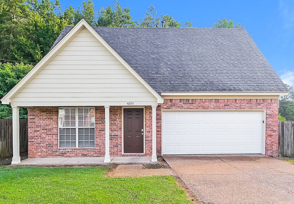 You'll love this Memphis, TN, four-bedroom, two-and-a-half-bath rental home with an attached two-car garage and a welcoming front porch. The carpeted living room is a stunning space with a corner fireplace and a vaulted ceiling. The chair rail and arched doorways add to the elegance of this room. The kitchen has everything you need for preparing meals, like stainless steel appliances and a built-in pantry with plenty of storage space. The formal dining room is ideal for entertaining, with a wonderful bay window and an attractive chandelier. You'll look forward to retreating to the carpeted main bedroom suite each evening, where you'll find a convenient ceiling fan and a bathroom with double sinks. Book a tour today.