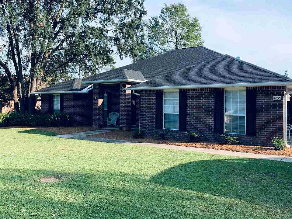 Must see home in Brentwood Estates in Pace. All brick home with NEW Architectural Shingle Roof. This home has: *four bedrooms and three bathrooms *High ceilings with crown molding *Porcelain tile in the kitchen, bathrooms, sun room and laundry room *Beautiful hardwood floors in the common areas and Master Bedroom. *New carpet in the additional bedrooms. *Freshly painted throughout. *New refridgerator *New HVAC installed September 2020. You will enjoy the covered back porch for cook outs or relaxing after a long day. The sprinkler system makes maintaining a lush lawn effortless. The backyard shed has electricity with airconditioning and is great for storage. Additional insulation has been added to the attic to help with energy efficiency. You will love living here.